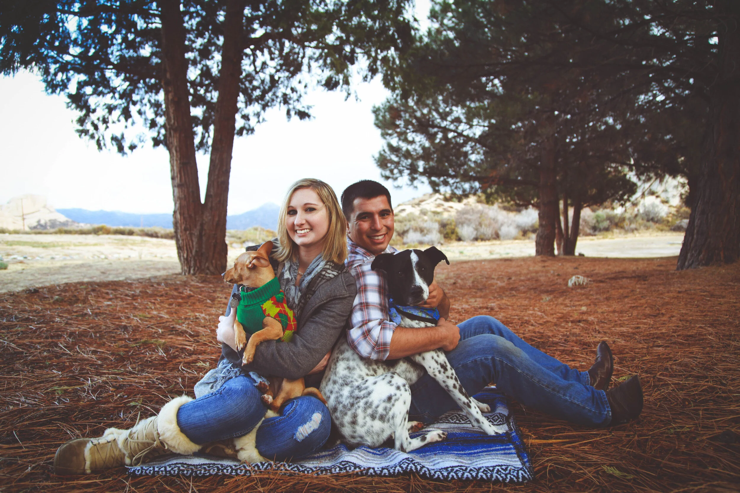 Desiree and Kris are really cute. This was one of the coldest shoots I've ever done, but they handled it like pros, (especially for being Texans!) and we were able to capture some really stunning shots despite the rainy/snowy/windy weather. They brought along their two dogs, Marley & Mac, who ended up serving as the comic relief throughout the entirety of the shoot. Mac was great about sitting whenever he was told, but he would somehow always be sitting facing the front of their legs and away from my camera :)